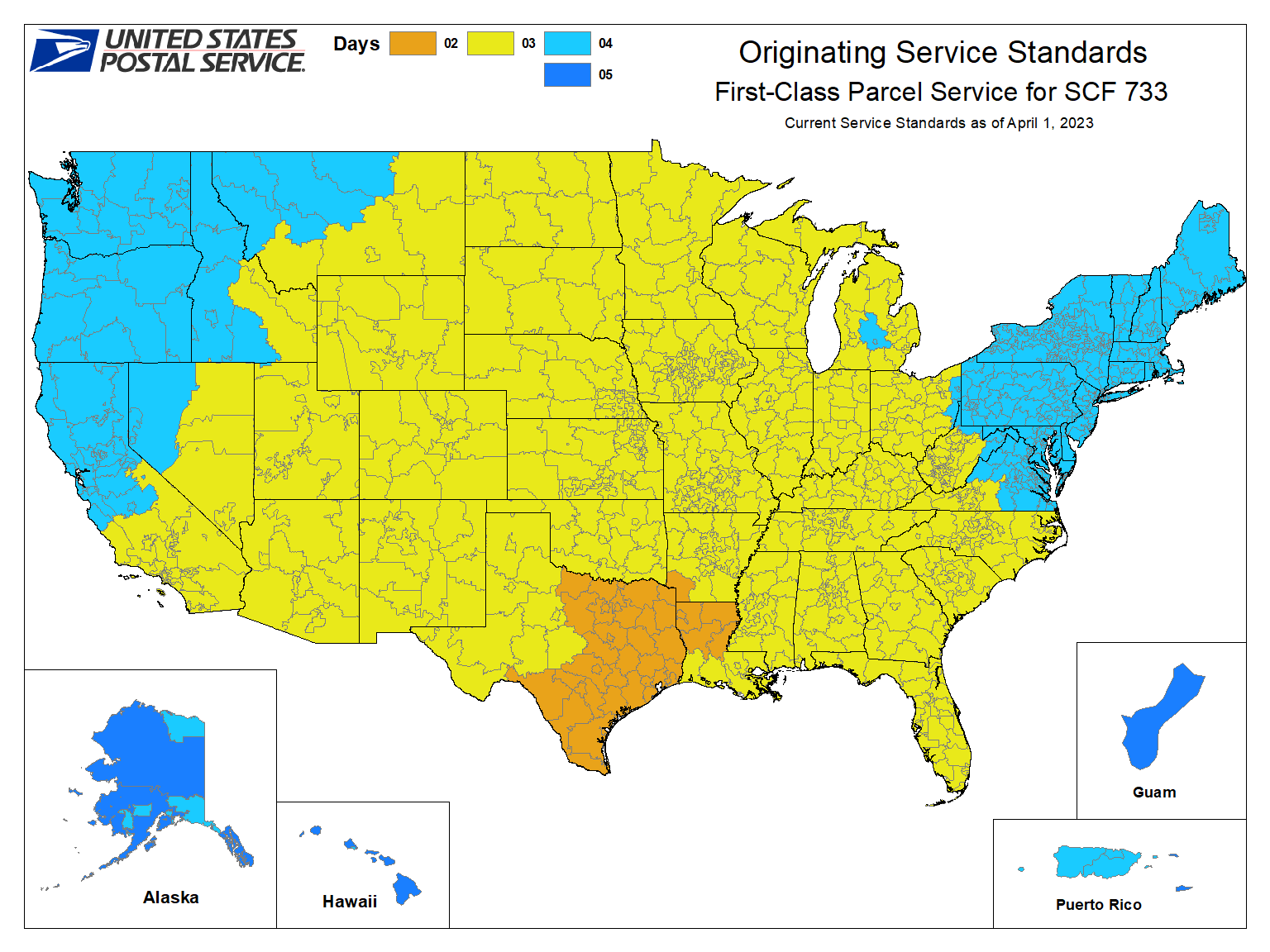 The transit time is usually 2-5 business days depending on your distance from us (we're located in Texas). Here are approximate transit times: